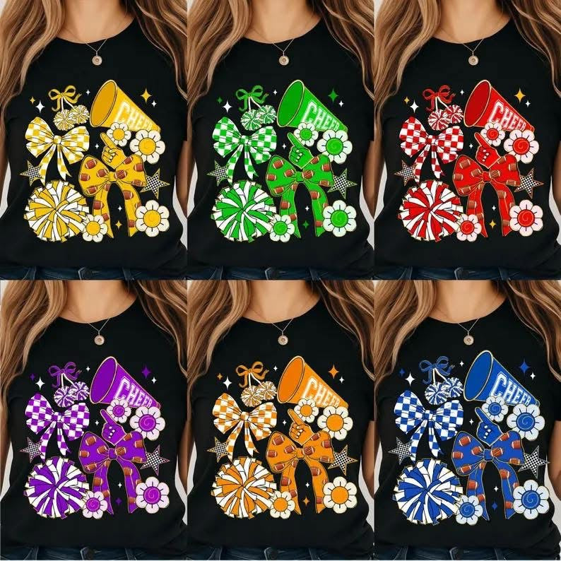 Cheer Collage with Football Bow - T SHIRT - (Jerzee/Gildan)