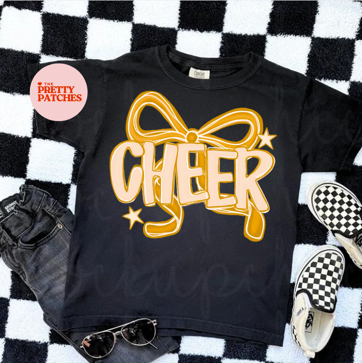 CHEER- LARGE GOLD RIBBON WITH STARS T-SHIRT (BELLA / COLOR COMFORT )