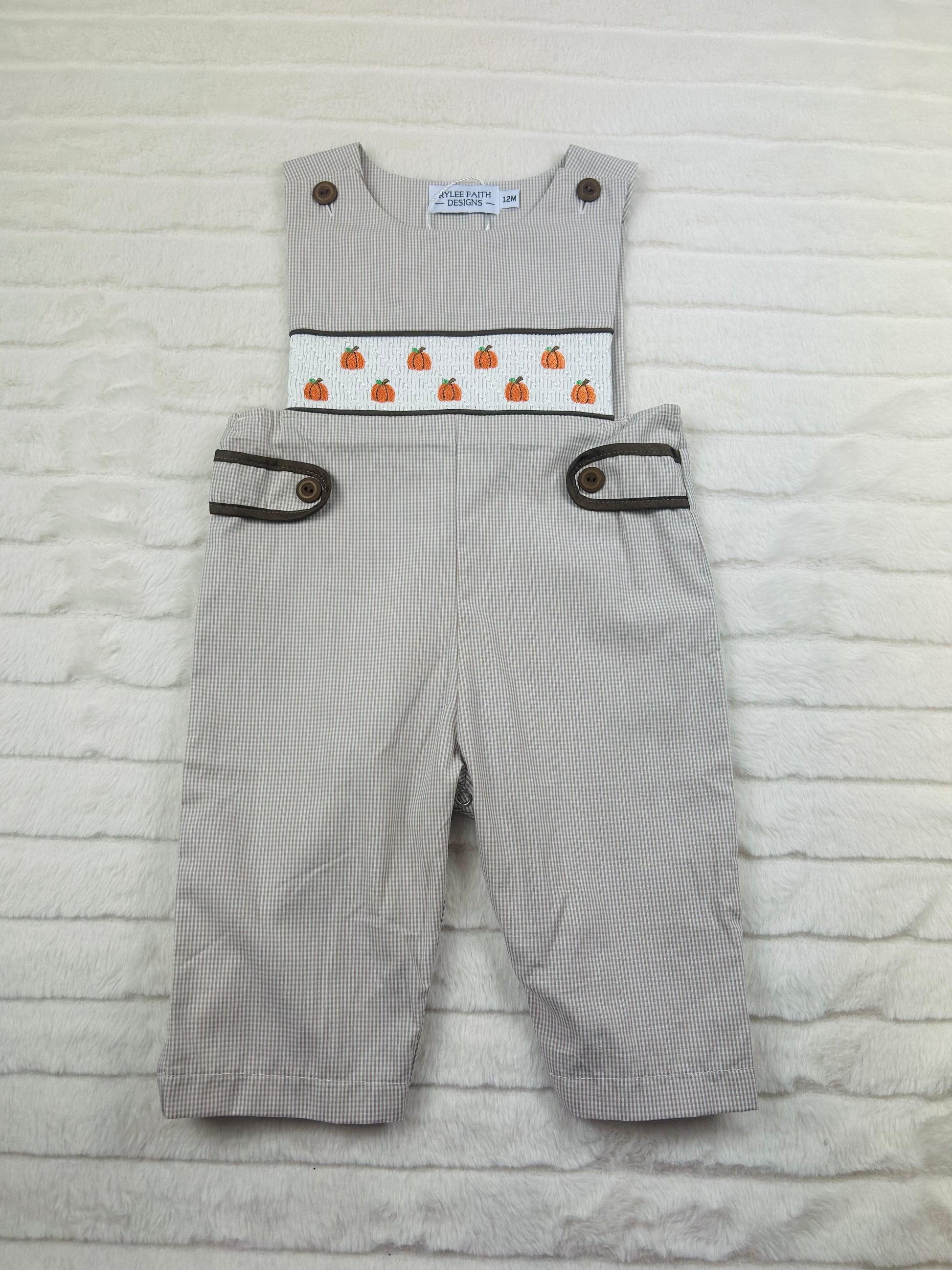 Make your little girl the star of every celebration with our thanksgiving and Halloween pumpkin 🎃 embroidery smock plaid baby boys romper. This versatile romper features charming pumpkin embroidery on classic plaid fabric, perfect for both spooky Halloween parties and elegant Thanksgiving dinners.