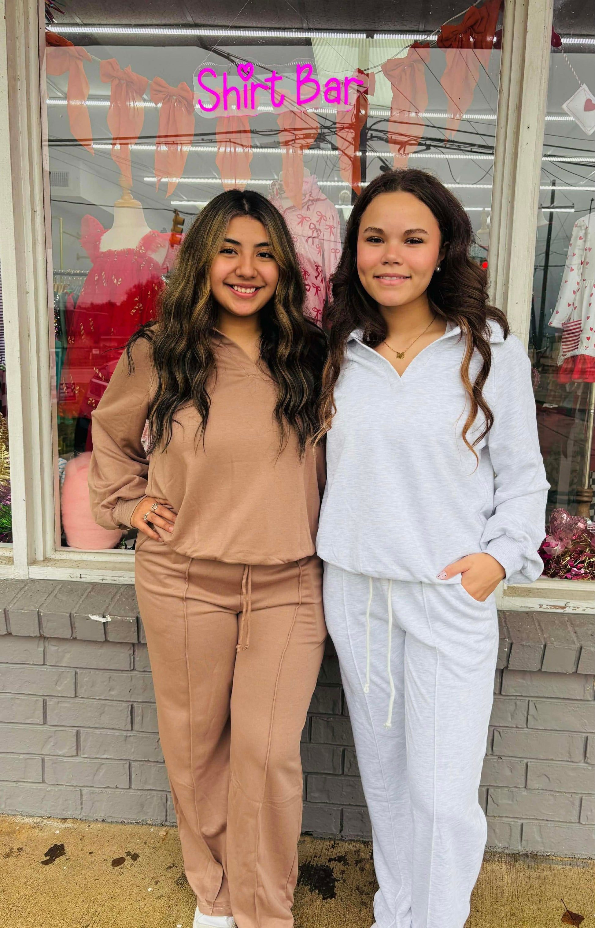 Polo Collar V Neck Pullover + Drawstring Sweatpants