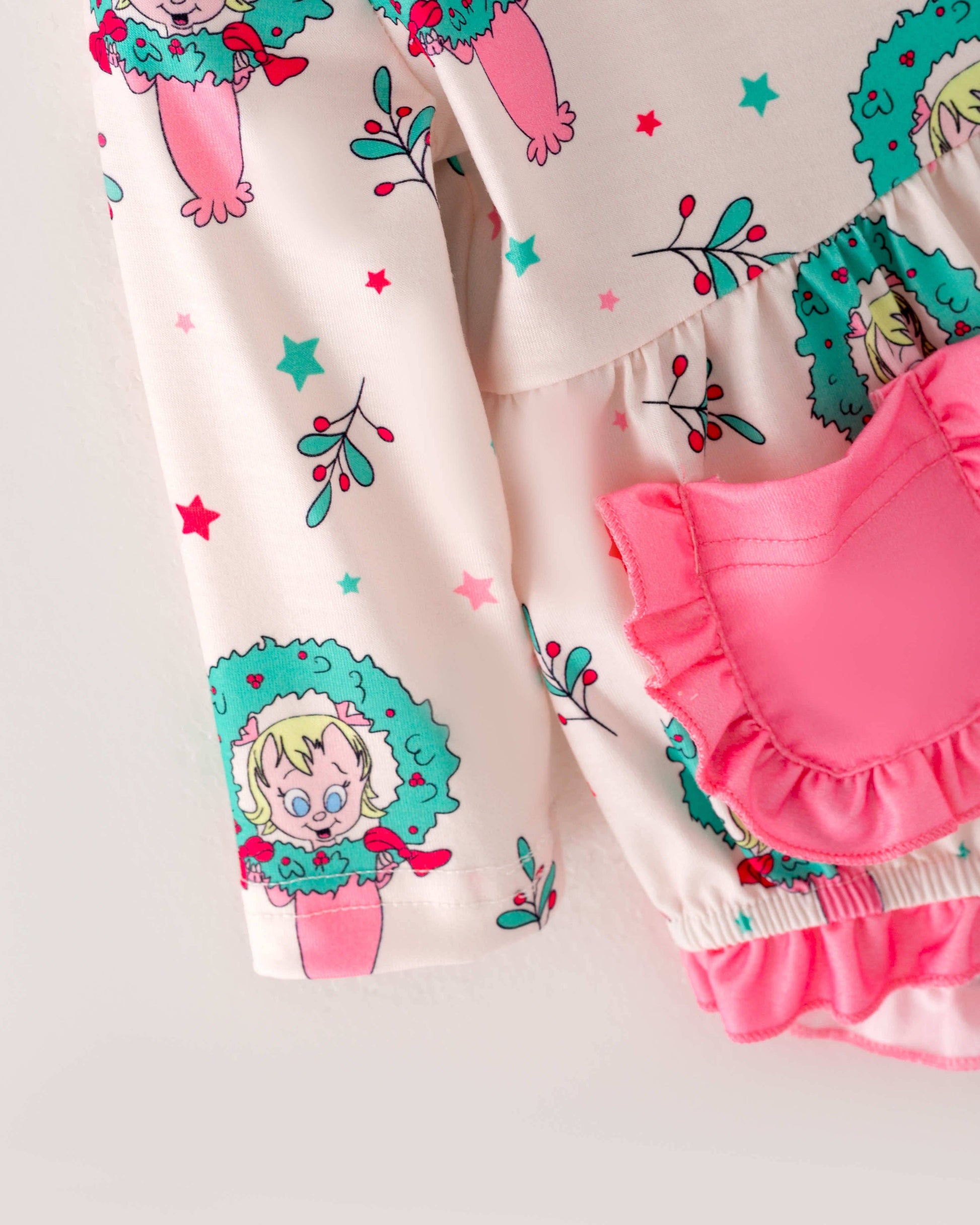 ✅ Beige Ruffle Poctet Baby Girl Bubble Romper RPG40798