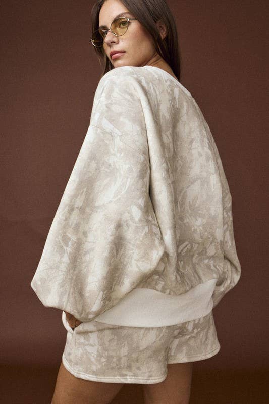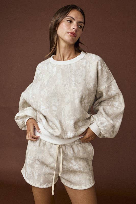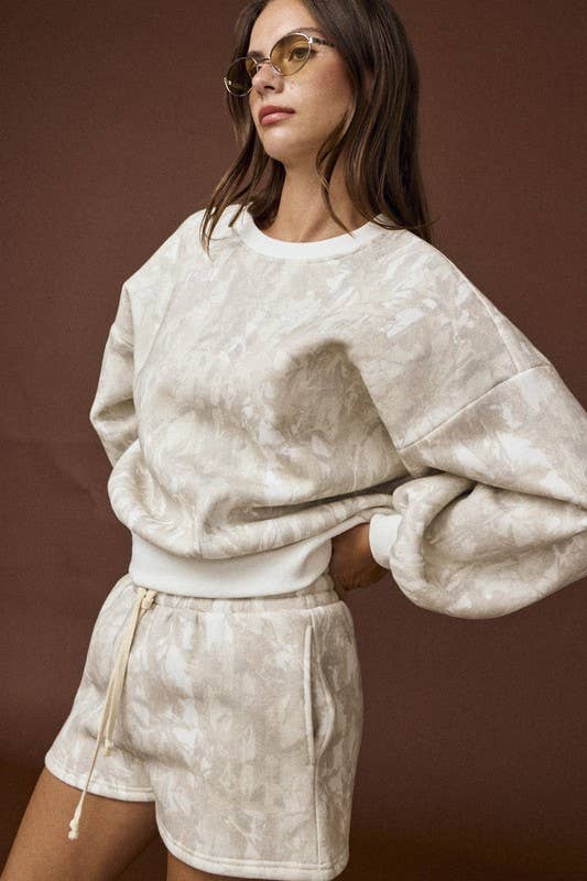 Woodland camo crewneck and shorts,-this style is sold as a set,model's height is 5' 8" and wearing a size S