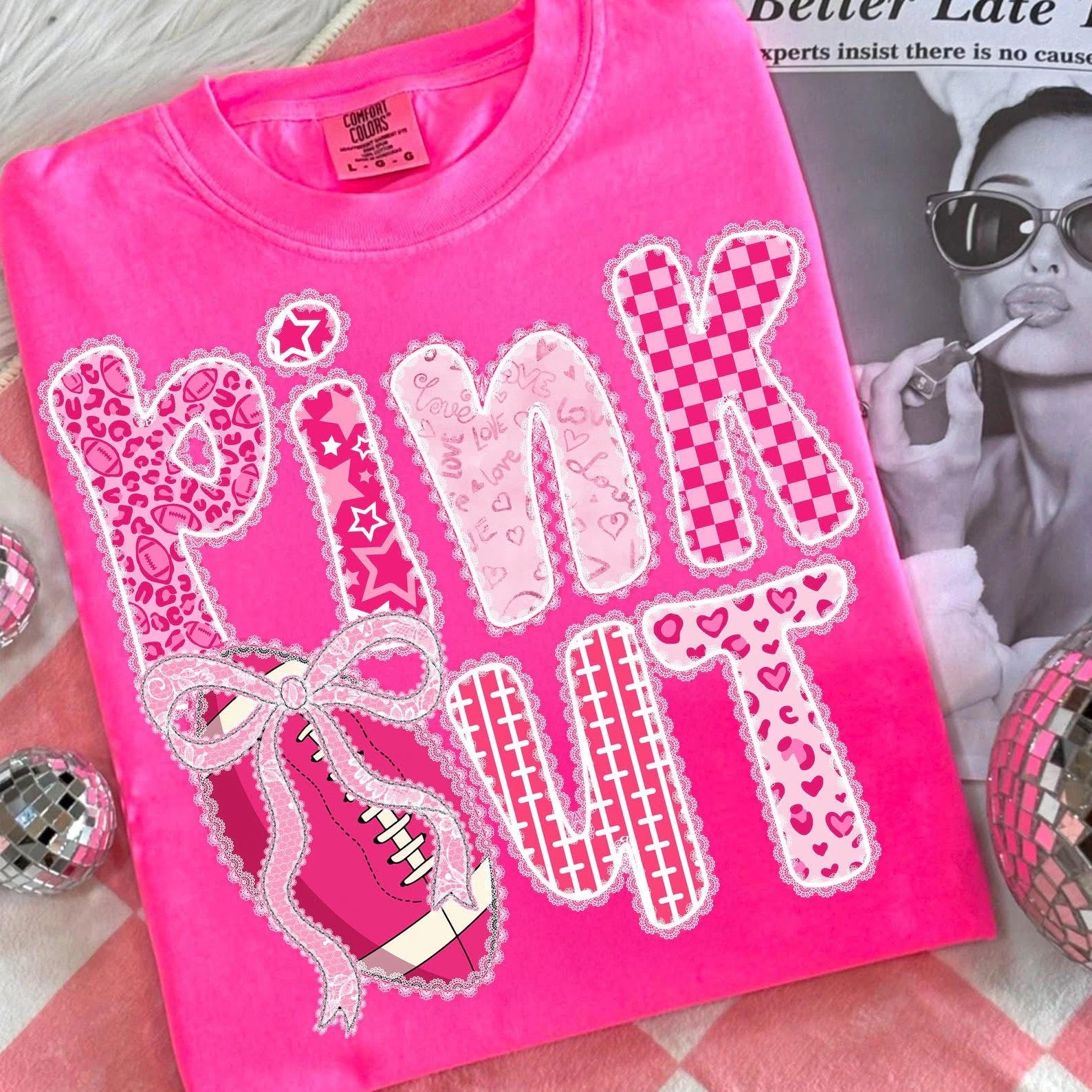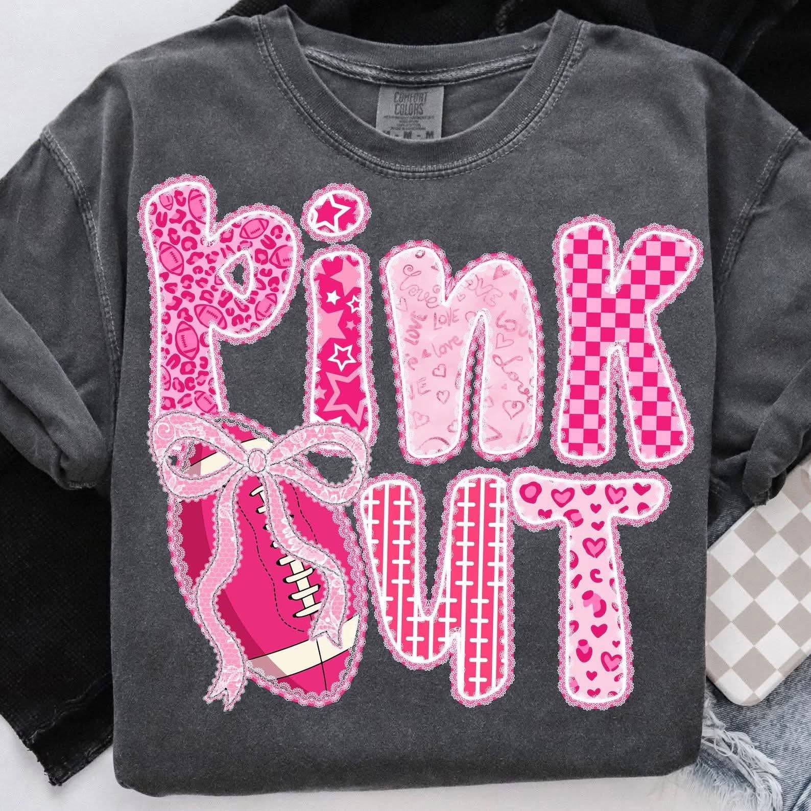 Pink Out with Bow & Football - T SHIRT - (Jerzee/Gildan)