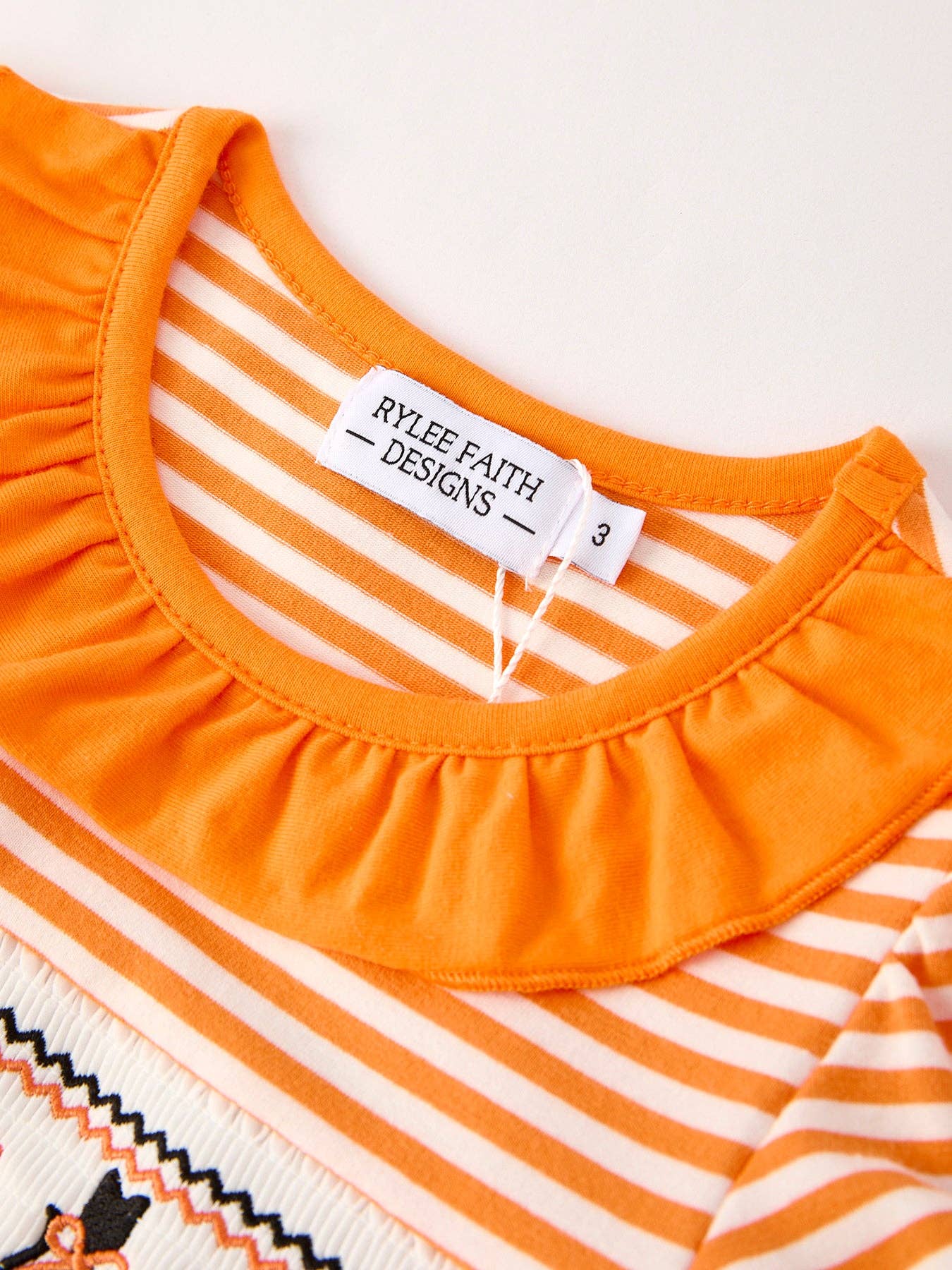 Rylee Faith Designs - Halloween Striped Dress with Cat Smocking Embroidery – 110825br