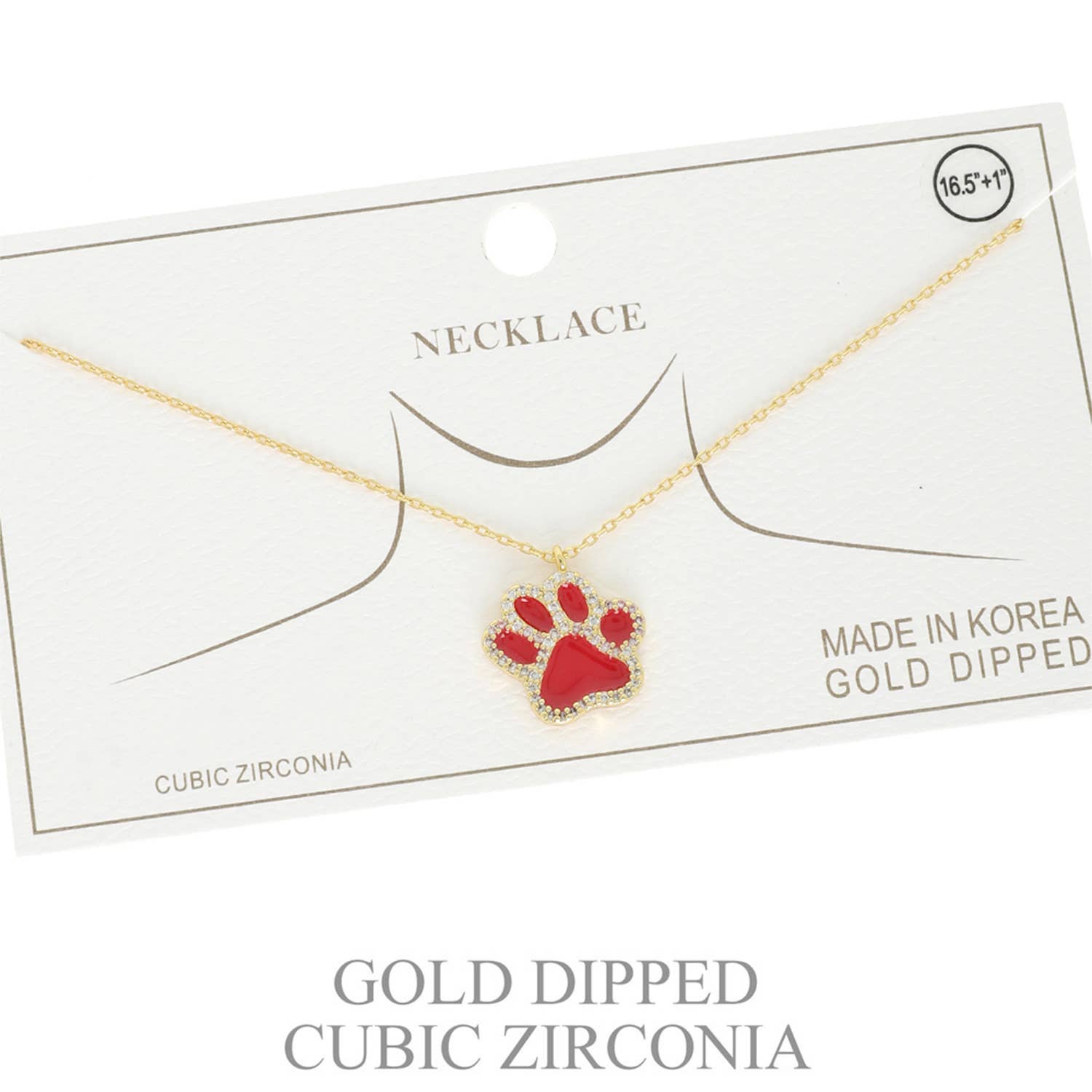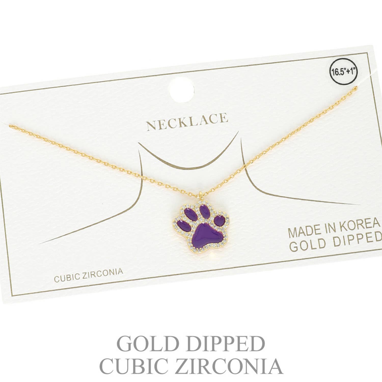 Gameday Gold Plated CZ Paw Stud Necklace N1575