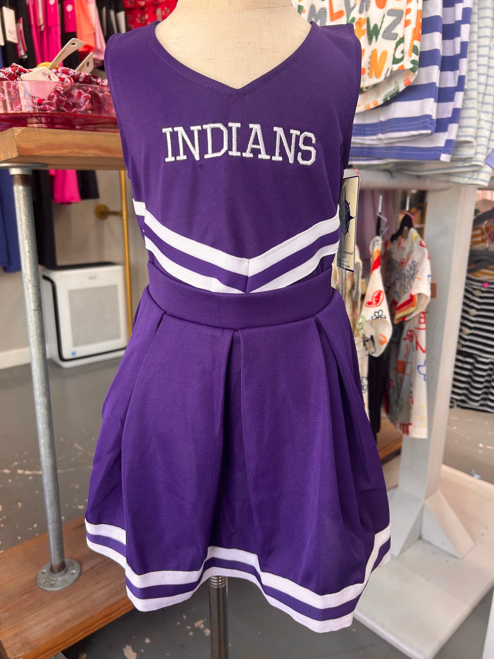 -100% Polyester -Includes top, shirt, and bloomers -Best cheer dress on the market -Perfect for local high schools!