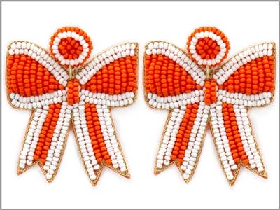 Orange and White Seed Bead Bow 2.75" Game Day Earring
