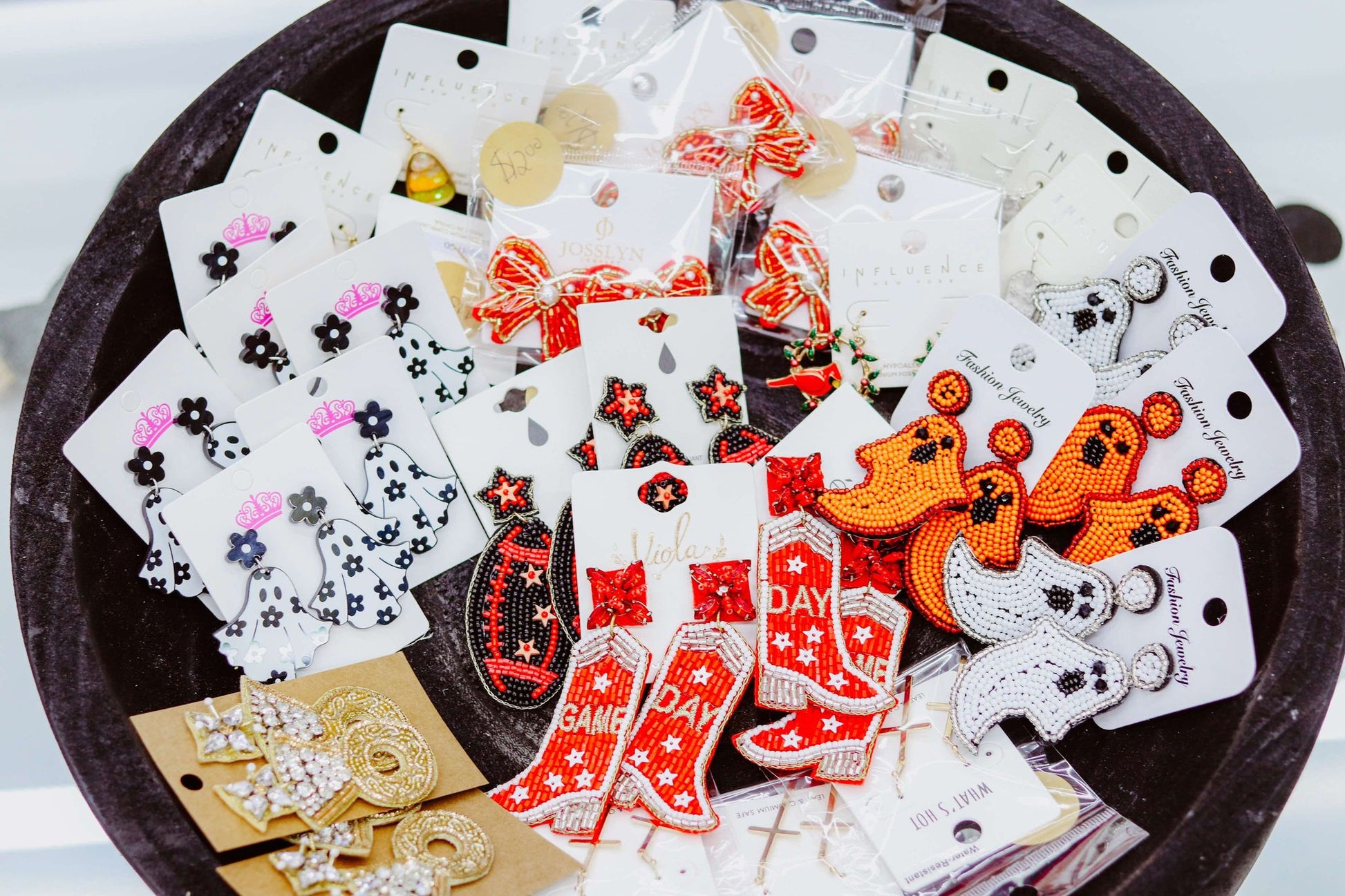 Unveil your sporty spirit with the Red and White Rhinestone Gameday Boot Earrings by What's Hot. These dangle earrings are a striking combination of fun and style. They make a great accessory for game day or any day you want to show off your unique style. With What's Hot, you can always count on fashionable and affordable accessories that keep you on-trend. Thank you for choosing us for your fashion needs.