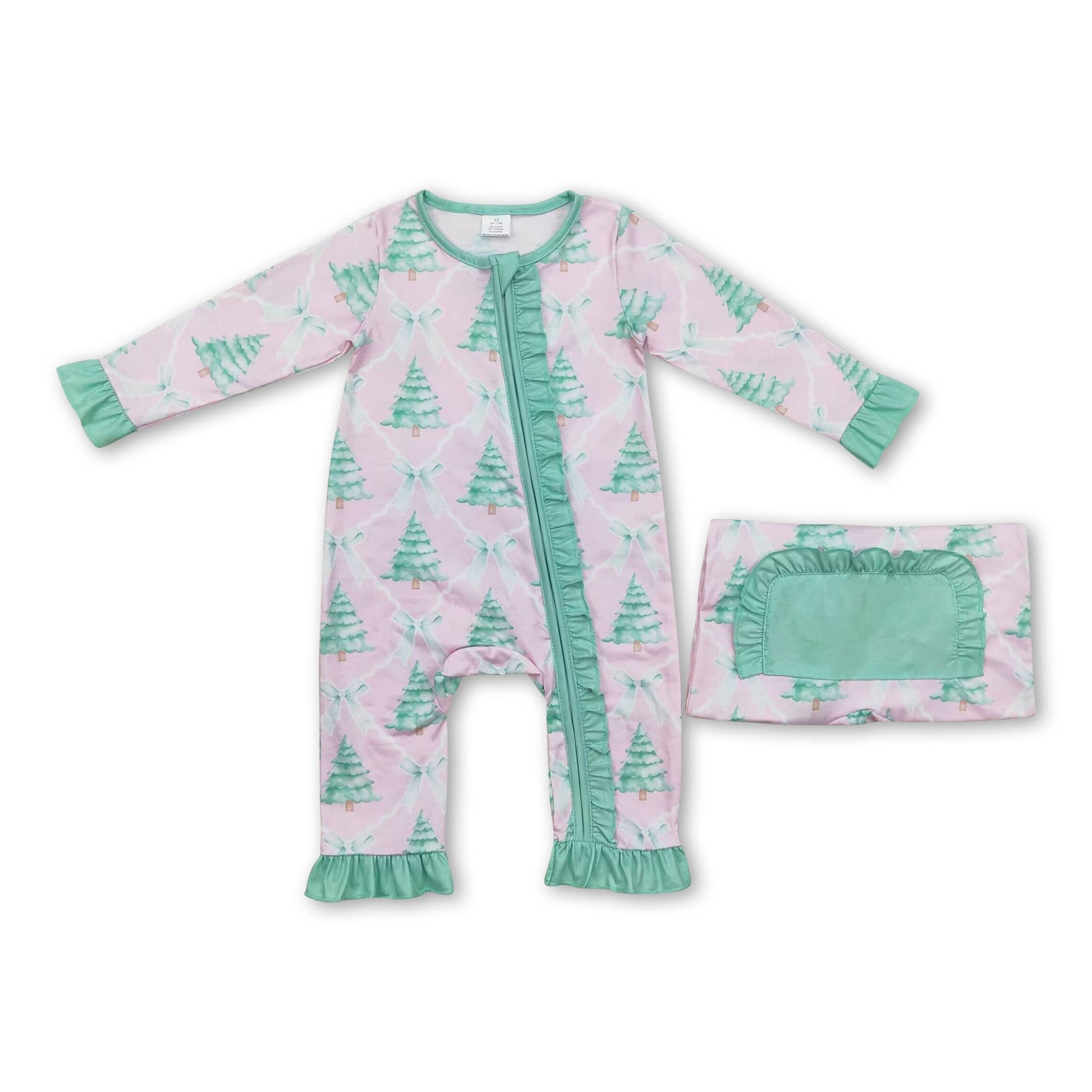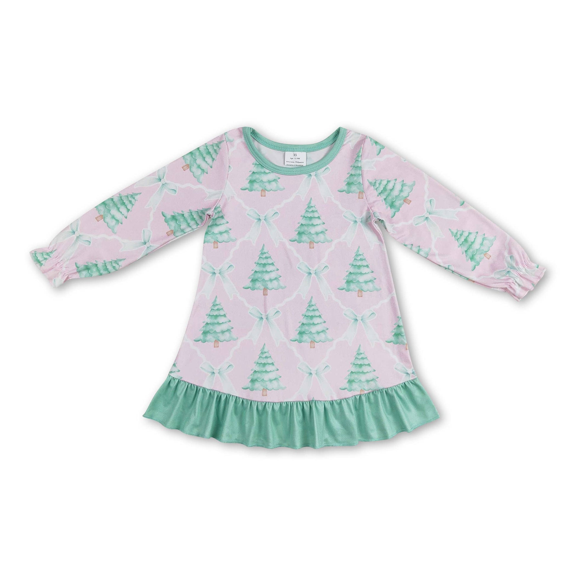 Pink Christmas tree bow kids girls pajamas GLP1242