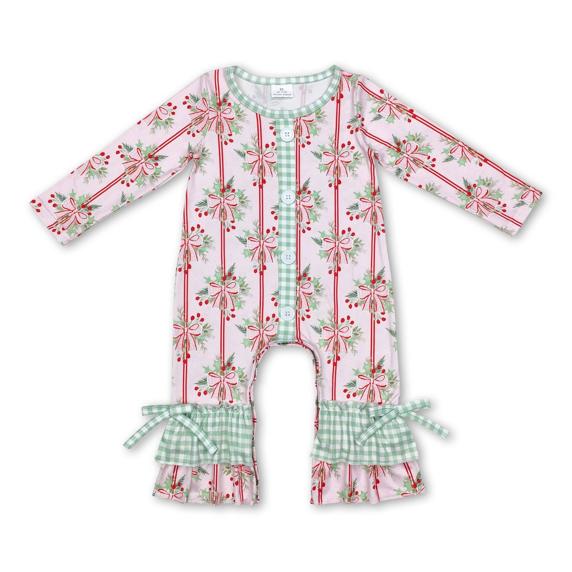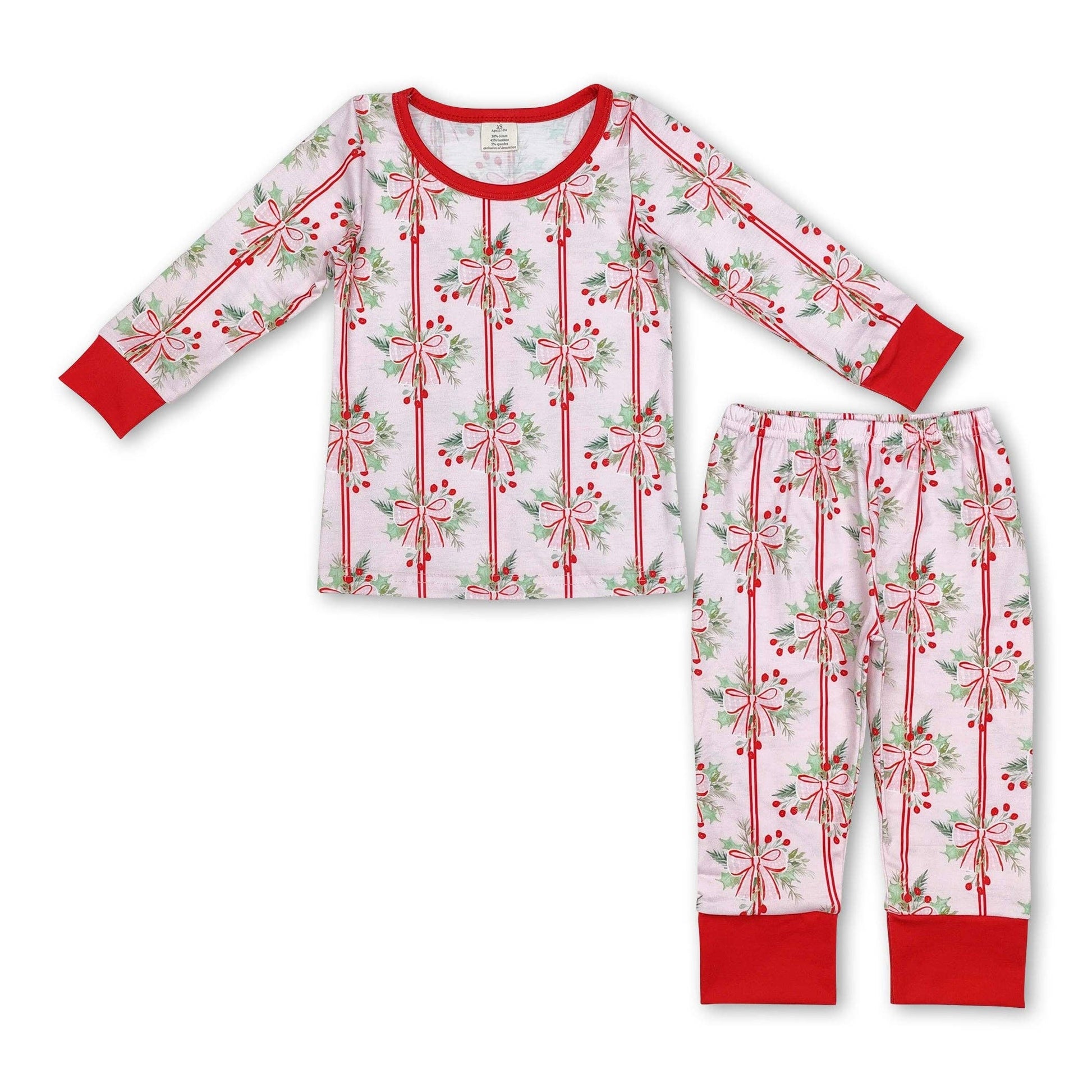 Red long sleeves pink bow girls bamboo Christmas pajamas GLP1476